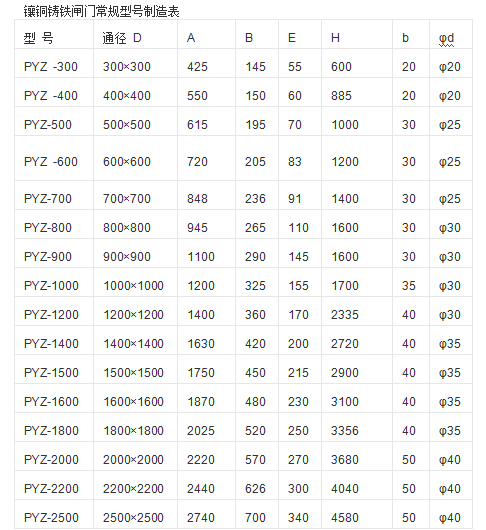 1、鑲銅鑄鐵方閘門由門框、閘板、導軌、密封條、驅動螺桿、提升螺母/吊架和可調密封機構組成。門框和閘門采用優(yōu)質灰鑄鐵或球墨鑄鐵制造。導軌采用不銹鋼螺栓定位銷和門框兩側對稱布置。中小型閘門,其導軌可與車門框架澆注。導軌長度一般為閘門全開高度的1/2~1/3,整體結構強度高、剛度高、耐磨性好、耐蝕性好、承壓能力高。
